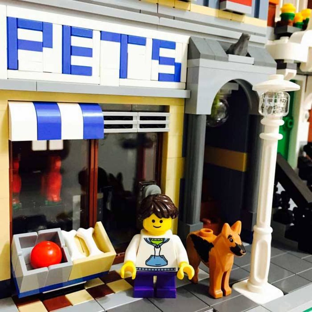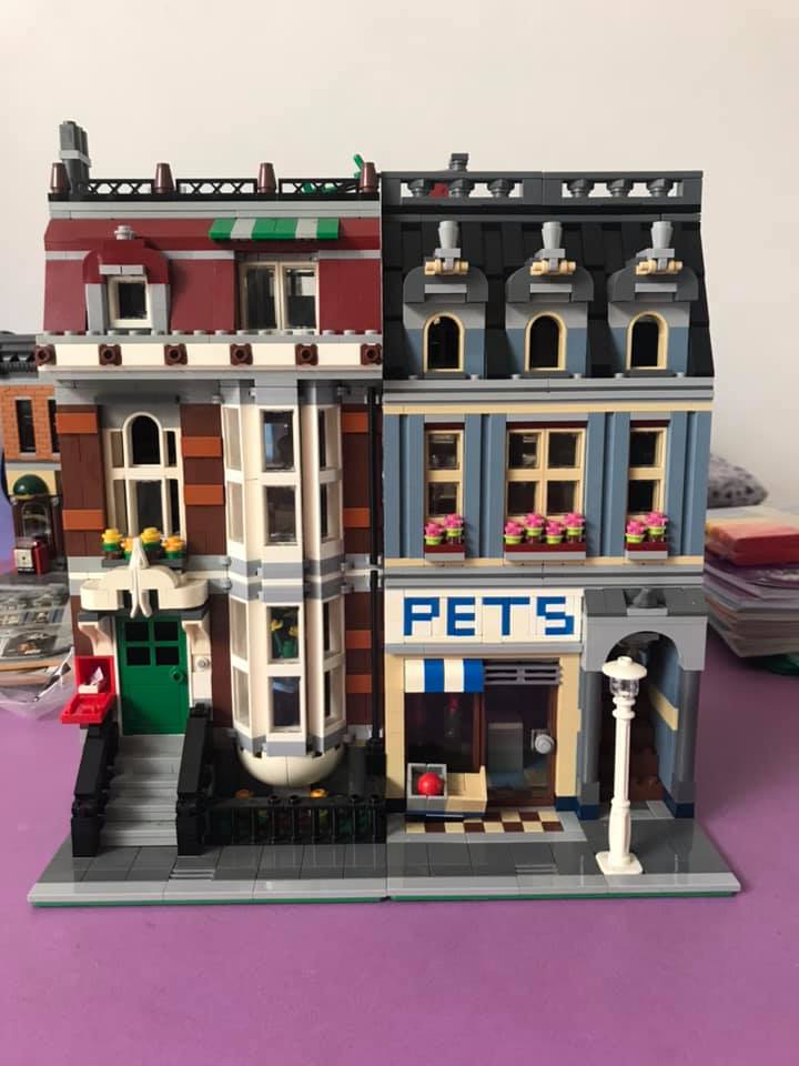 Zestaw jest bogaty w detale, które upiększają ten model. Kolorystyka dwóch budynków z kompletu oraz tekstura ich budownictwa, sprawia wrażenie właściwego odwzorowania rzeczywistości. Występuje tutaj duża ilość okien, dzięki temu można zajrzeć do środka i sprawdzić co się tam ciekawego właśnie dzieje! Kolejnym pozytywnym aspektem jest to, że małe kwiatki pięknie przyozdabiają budynek, zaś napis nad sklepem przyciąga klientów wraz ze swoimi pupilami. Do środka zapraszają przestronne drzwi dla klientów, z tyłu budynków również są drzwi którymi można wejść, ale to raczej dla właścicieli. Mamy tutaj latarnię i czerwoną skrzynkę na listy.