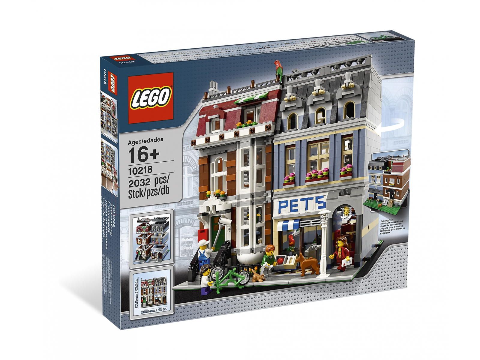 Zestaw “Sklep zoologiczny” pochodzi z serii Creator Expert i został wydany w roku 2011 z przeznaczeniem dla osób w wieku 16 lat i więcej. Składa się on z 2032 elementów . Zestaw jest idealny dla osób, które lubią miejskie klimaty, kiedy dużo się dzieje wokół i można tworzyć scenerie z życia codziennego z użyciem minifigurek.