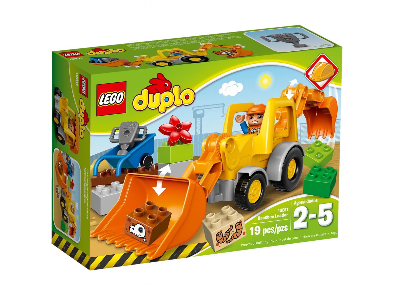 Klocki LEGO 10811 Duplo - Koparko-ładowarka (Backhoe Loader) Tanio zestaw LEGO 10811. Liczba klocków LEGO 19. Zestaw LEGO z roku 2016.