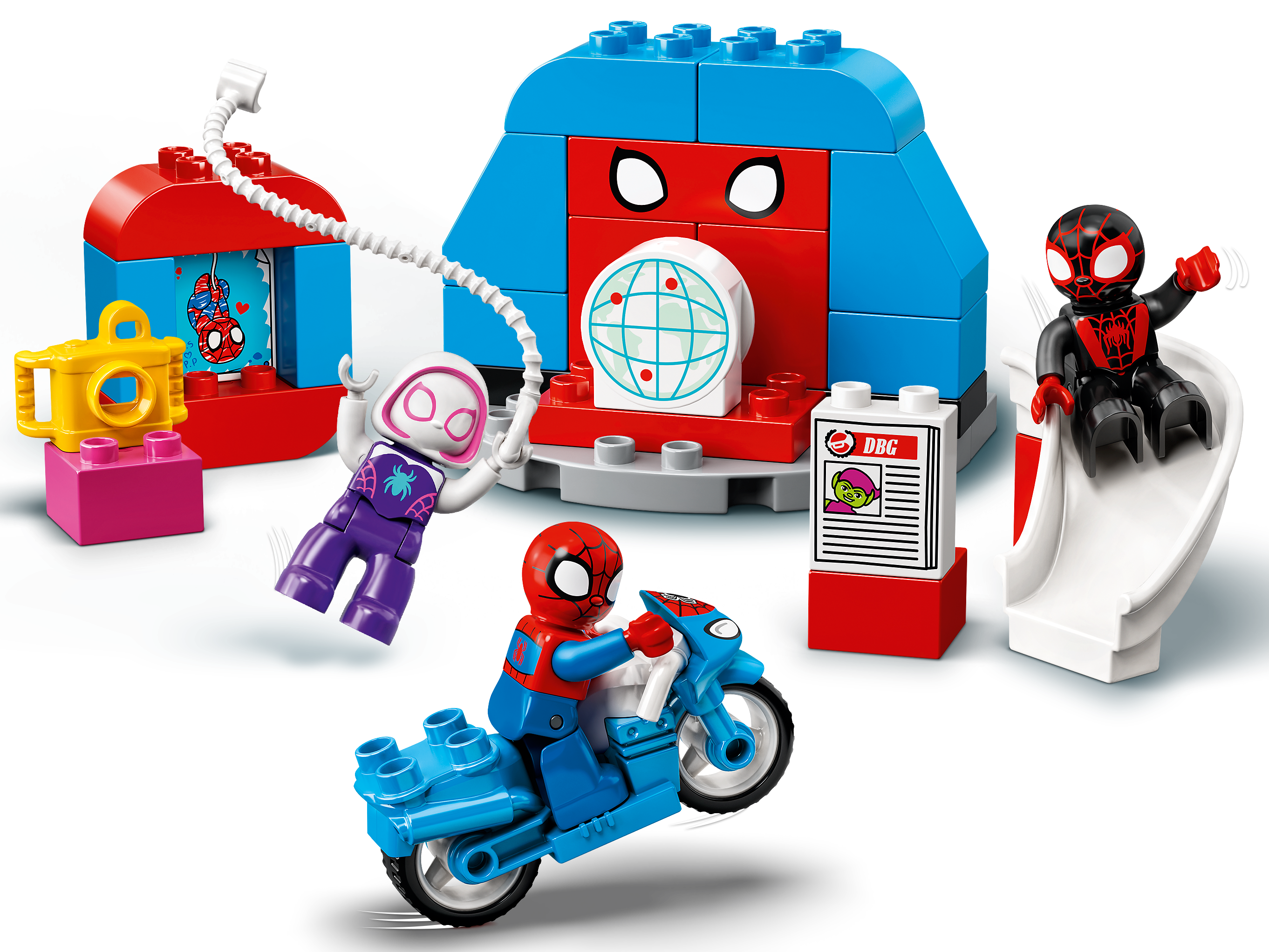 Zestaw z superbohaterami dla maluchów inspirowany emocjonującymi przygodami z serialu telewizyjnego „Spidey and His Amazing Friends” z kanału Disney+ rozwija umiejętności maluchów podczas zabawy edukacyjnymi klockami konstrukcyjnymi LEGO DUPLO. Zestaw zawiera trzy figurki superbohaterów: Spider-Mana, Milesa Moralesa oraz Ghost Spider. Ich kwatera w kształcie pająka wypełniona jest ciekawymi akcesoriami inspirującymi do pomysłowej zabawy w odgrywanie ról, takimi jak motocykl, zjeżdżalnia i huśtawka linowa.