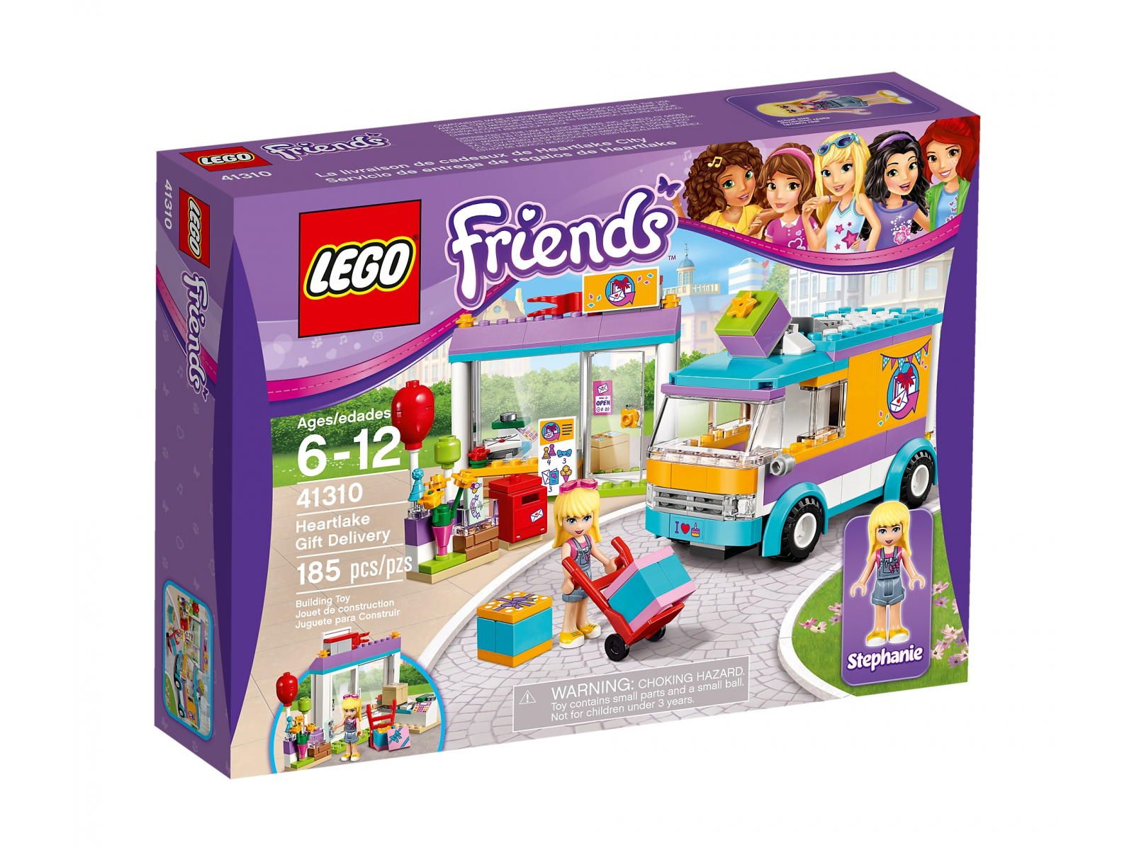 Sięgnij po zestaw Dostawca upominków w Heartlake LEGO® Friends i pomóż Stephanie dostarczyć prezenty. W pudełku znajdziesz samochód dostawczy i front sklepu z miejscem na prezenty, skrzynką pocztową i kasą. Weź prezent z podstawki, zapakuj go do pudełka, a potem za pomocą wózka załaduj do dostawczaka, który rozwozi prezenty po całym Heartlake. W zestawie minilaleczka.