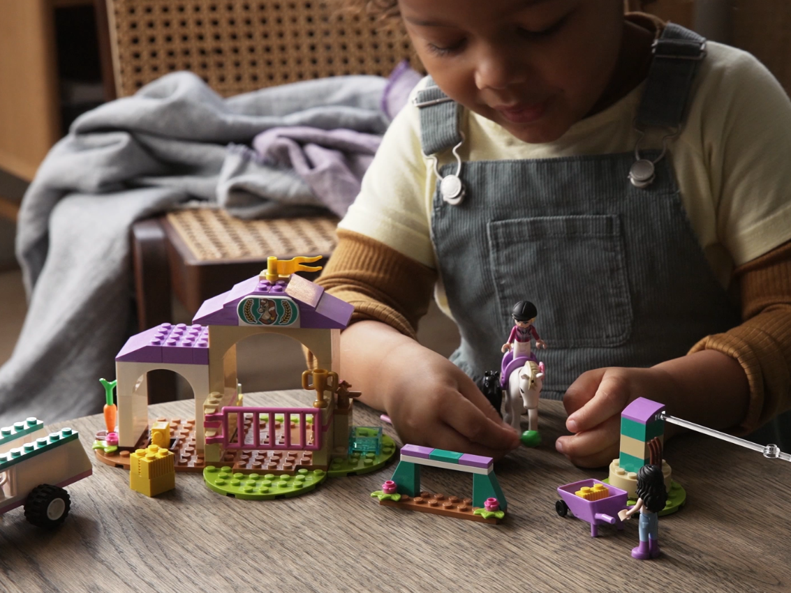 - Szkółka jeździecka i przyczepa dla konia (41441) to świetny wybór dla dzieci od 4. roku życia, które mogą teraz połączyć naukę budowania z opieką nad zabawkowymi zwierzętami. W pudełku jest autko i stajnia, więc inspiracji na pewno nie zabraknie.