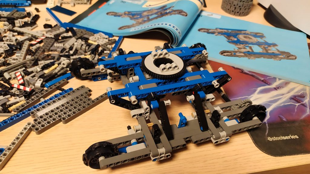 Jasna i czytelna instrukcja pomaga w procesie budowania żurawia. Przy tym zestawie trzeba mieć dużo cierpliwości i przede wszystkim starannie wykonywać wszystkie kroki z instrukcji. Tylko wtedy bowiem można mieć pewność, że gotowy żuraw będzie spełniał wszystkie oczekiwania i przede wszystkim będzie działał prawidłowo. Starannie trzeba zająć się zwijaniem lin, które po złożeniu zestawu będą spełniały niezwykle istotną rolę. Łączenie klocków w zestawie Technic jest nieco odmienne niż połączenia znane na przykład z systemu City. Chodzi przede wszystkim o zapewnienie jak najlepszej trwałości i stabilności gotowego pojazdu. Jeśli trzeba, to niektóre elementy musza być złączone przy pomocy śrubek, oczywiście dołączonych do zestawu. Jednak to właśnie takie rozwiązania i taka różnorodność sprawiają, że zestaw żuraw gąsienicowy jest jednym z pożądanych przez wielbicieli Lego. Pojazd porusza się na szerokich gąsienicach, które również składają się z wielu mniejszych elementów, dlatego też trzeba starannie je poskładać, aby potem nie uległy rozczepieniu podczas zabawy żurawiem.