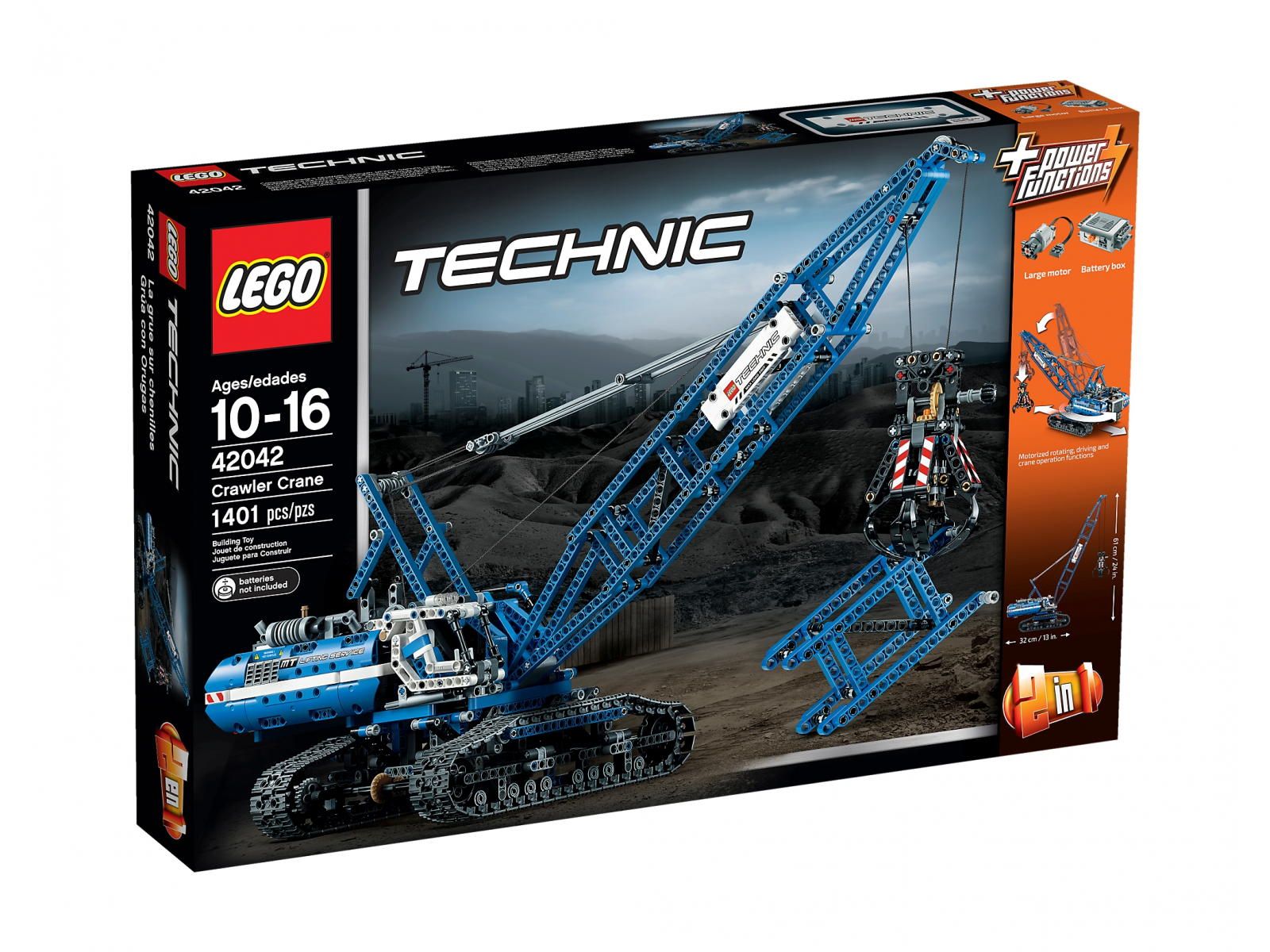 Pośród wielu modeli z serii Technic na uwagę na pewno zasługuje zestaw oferowany pod numerem katalogowym 42042 żuraw gąsienicowy. Imponujący zestaw pozwala na stworzenie ciekawego i niezwykle realistycznie wyglądającego modelu, który dodatkowo wyposażony w silnik daje możliwość zabawy tak samo jak prawdziwym żurawiem. Produkowany od 2015 do 2016 roku zestaw zawiera 1401 elementów. Wśród nich można również znaleźć te, które umożliwiają w budowanym modelu instalacje silniczka elektrycznego. Ze względu właśnie na te elementy jak również dość skomplikowany proces składania zestaw przeznaczony jest dla osób powyżej 10 roku życia. Odpowiednie złożenie klocków znajdujących się w zestawie kończy się ułożeniem żurawia w kolorze błękitu i bieli jak również ładunku, który za jego pomocą można przenosić.