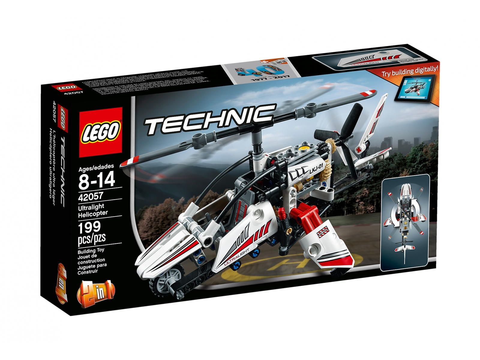 Klocki LEGO 42057 Technic - Ultralekki helikopter (Ultralight Helicopter) Tanio zestaw LEGO 42057. Liczba klocków LEGO 199. Zestaw LEGO z roku 2017.