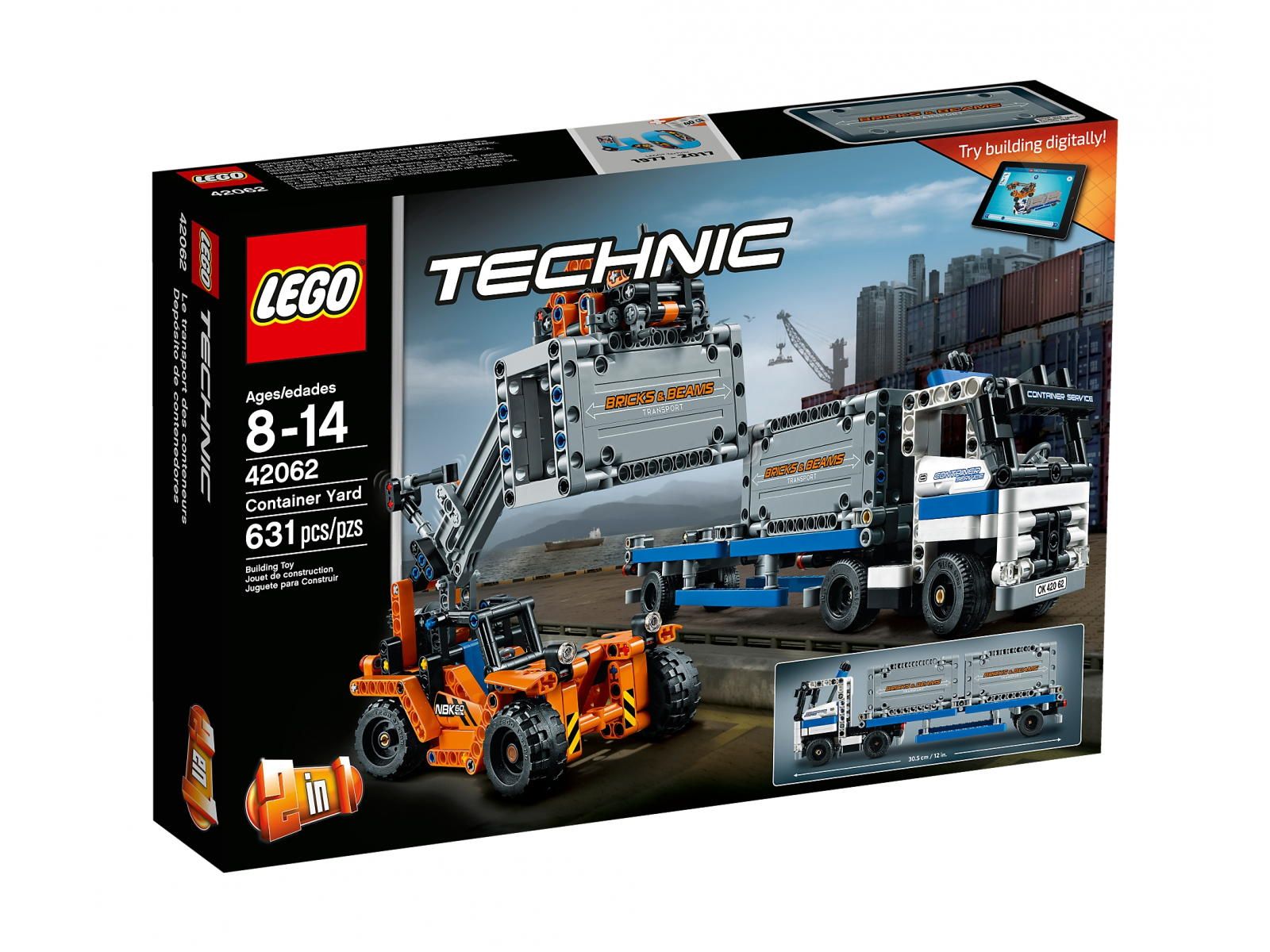 Klocki LEGO 42062 Technic - Plac przeładunkowy (Container Yard) Tanio zestaw LEGO 42062. Liczba klocków LEGO 631. Zestaw LEGO z roku 2017.