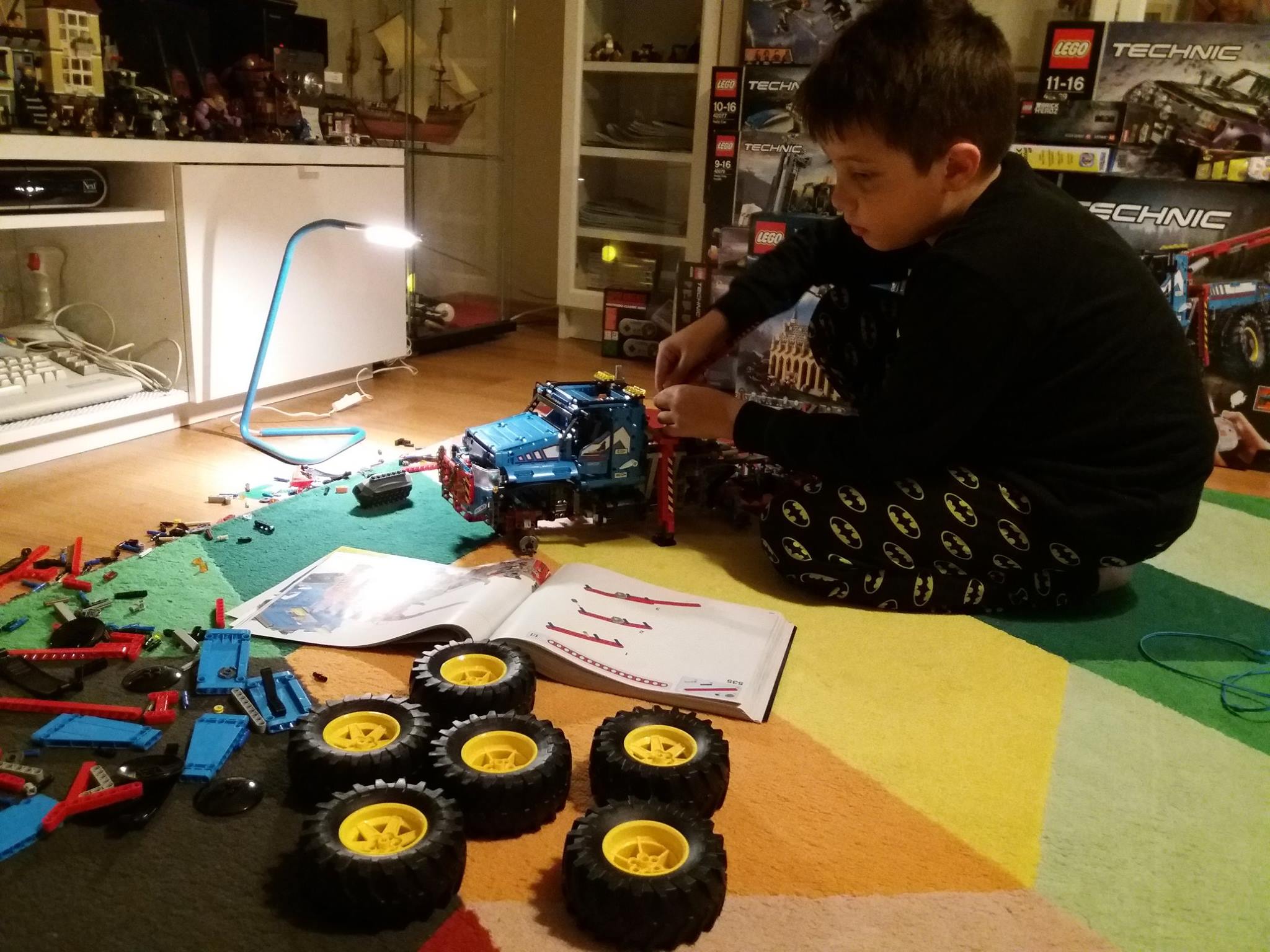 Zestaw jest dostosowany już do kategorii wiekowej 11+. Poziom łatwości składania zestawu podnoszą różne kolory klocków (jasnoniebieskie, czerwone, żółte i czarne elementy), dodatkowo pozwalają odróżnić poszczególne podzespoły w pojeździe. Kolorowe klocki użyte w zestawie to nowa koncepcja LEGO, dodano również wiele nowych nieco dziwnych kształtów klocków. Moim zdaniem pomimo dość sporej liczby elementów do złożenia zestaw nie należy do zbyt trudnych. Całość modelu jest bardzo realistyczna. Pojazd posiada duże opony terenowe, łańcuch zamontowany z przodu na zderzaku, wzmocnione orurowanie z hakiem na łańcuchu, ruchome lampy i dużo detali na otwieranych drzwiach kierowcy. Zestaw zawiera również naklejki, które według mnie są bardzo dobrze odwzorowane, oraz po przyklejeniu ich na pojazd tworzą fajną zgraną całość. I choć zestaw jest bardzo dobrze wykonany i szczegółowy kolorystyka żółta, czerwona i niebieska, oraz plastikowy miś zamontowany z przodu pojazdu mogą nieco wydawać się dziecinne jak na tego typu pojazd. Do reszty nie można się przyczepić. Zestaw pod względem dokładności wykonania, kolorystyki i opisu robi naprawdę ogromne wrażenie.