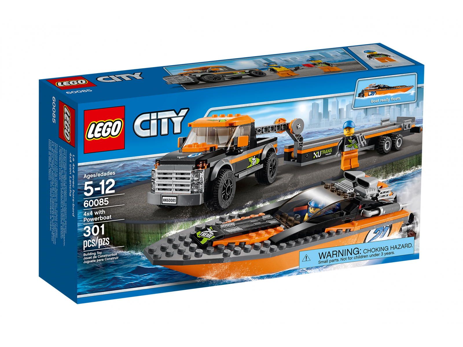 Klocki LEGO 60085 City - Terenówka z motorówką (4x4 with Powerboat) Tanio zestaw LEGO 60085. Liczba klocków LEGO 301. Zestaw LEGO z roku 2015.