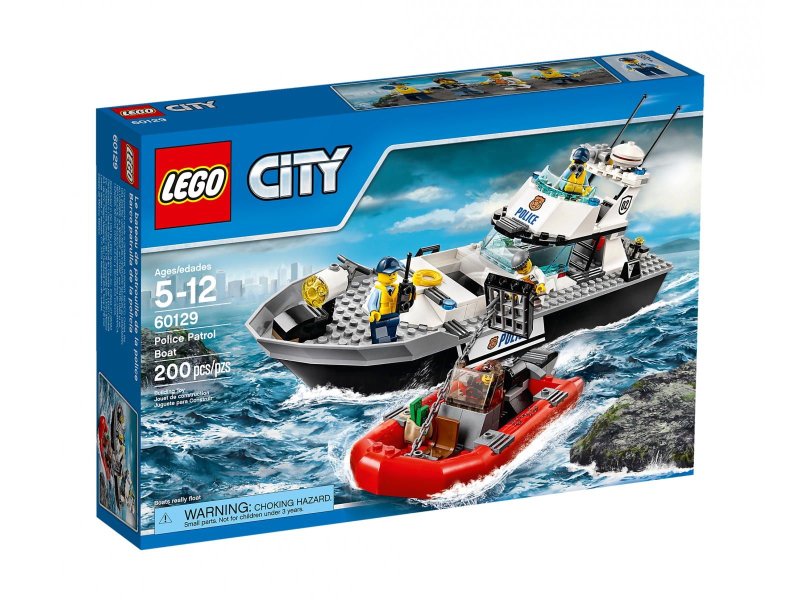 Klocki LEGO 60129 City - Policyjna łódź patrolowa (Police Patrol Boat) Tanio zestaw LEGO 60129. Liczba klocków LEGO 200. Zestaw LEGO z roku 2016.