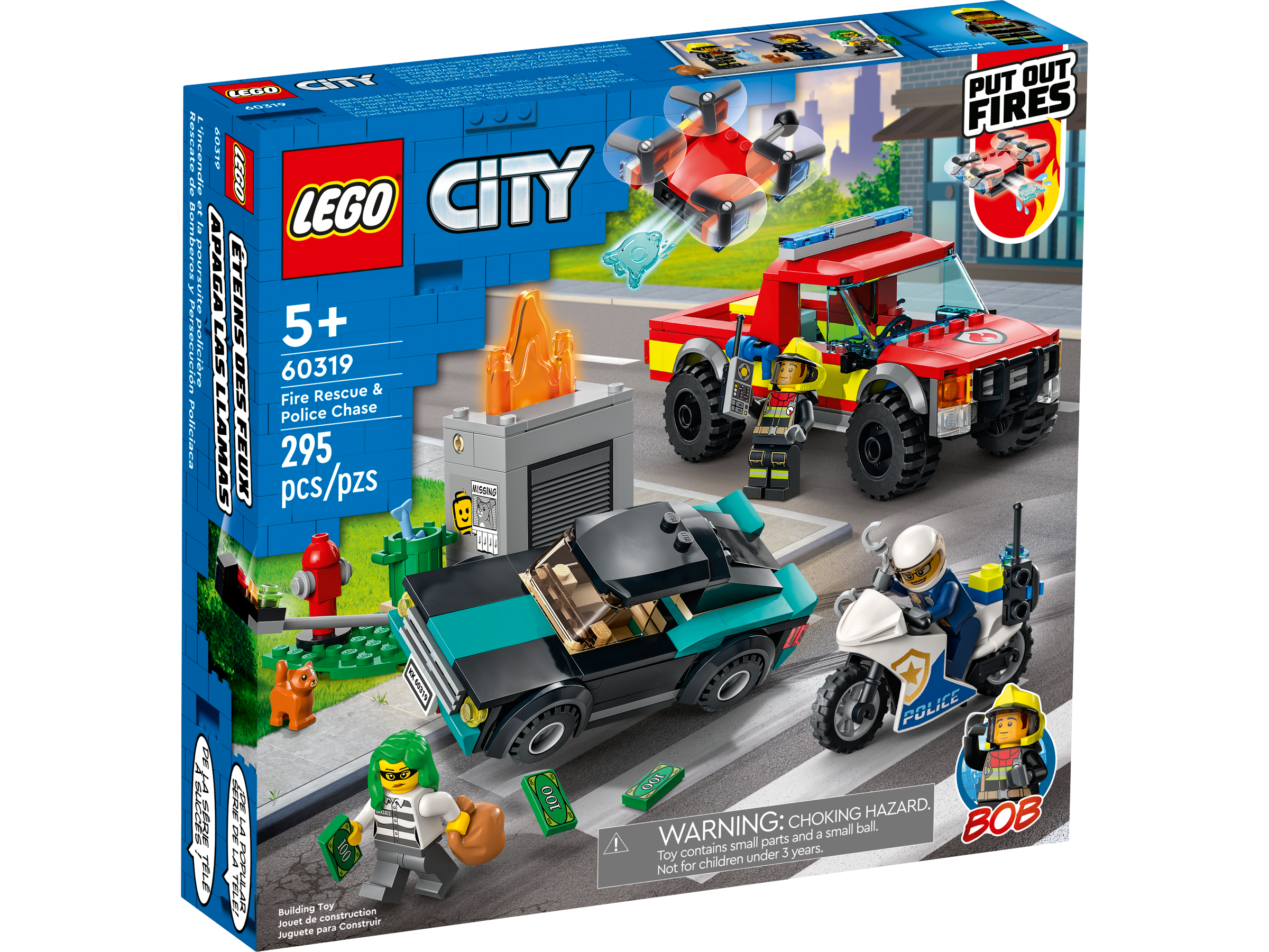 Klocki LEGO 60319 City - Akcja strażacka i policyjny pościg (Fire Rescue & Police Chase) Tanio zestaw LEGO 60319. Liczba klocków LEGO 295. Zestaw LEGO z roku 2022.