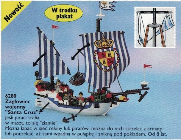 Zestaw LEGO Pirates – Żaglowiec wojenny Santa Cruz trafił do sprzedaży w 1996 roku.