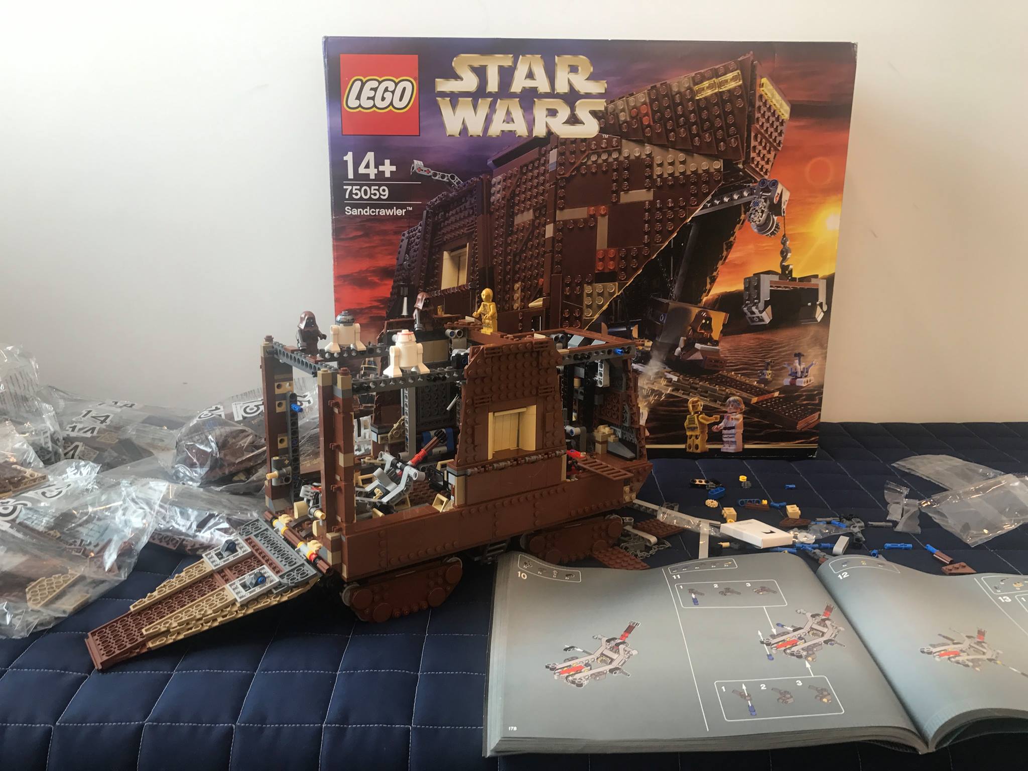 Wielkie wrażenie robi już samo opakowanie. Świetna szata graficzna jest zaledwie zwiastunem, aczkolwiek doskonałym, tego, co znajduje się w środku. Model Sandcrawlera w pustynnej scenerii i zachodzącym słońcem nawiązuje bezpośrednio do filmu. Właśnie na pustynnej planecie można było podziwiać ten imponujący pojazd. W tym wypadku mamy do czynienia z 3296 elementami i trzeba przyznać, że jest to ogromna ilość klocków. Na szczęście, jak zawsze można liczyć na bardzo dobrze zilustrowaną instrukcję obsługi, bez której złożenie całości mogłoby być nieco problematyczne. Zestaw dedykowany jest dzieciom powyżej czternastego roku, ale ostatnie lata pokazały, że stanowi również nie lada gratkę dla dorosłych miłośników klocków LEGO. Premiera Sandcrawlera miała miejsce w 2014 roku i można powiedzieć, że do dnia dzisiejszego cieszy się ogromnym uznaniem.