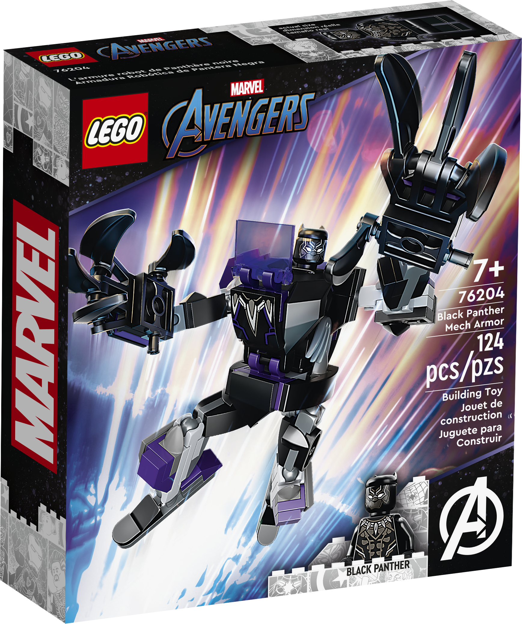 Klocki LEGO 76204 Marvel Super Heroes - Mechaniczna zbroja Czarnej Pantery (Black Panther Mech Armor) Tanio zestaw LEGO 76204. Liczba klocków LEGO 124. Zestaw LEGO z roku 2022.
