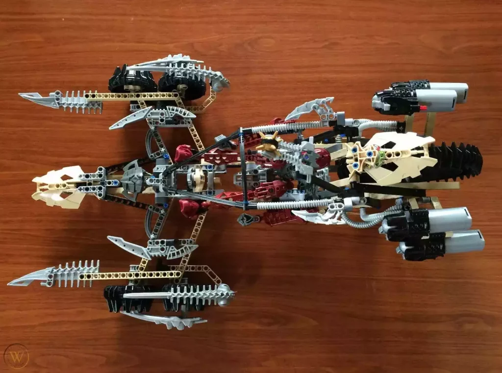 Po złożeniu pojazdu byłem pod wielkim wrażeniem tego, jakich rozmiarów monstrum stoi przede mną. Po wzięciu Thornatusa V9 do rąk poczułem jego wagę i solidne wykonanie. Przy upadku na ziemię wydaje mi się, że na spokojnie nic by nie odpadło, pojazd został starannie wykonany z ciekawych klocków zapewniających mu wytrzymałość. Pojazd posiada dużo gumowych i ruchomych części, na przykład gąsienice, dzięki którym możemy sterować naszym pojazdem, jeżdżąc po podłodze. Na górze kadłuba pojazdu umieszczoną wieżyczkę, która możemy wysuwać i chować. Dodatkową bardzo ważną rzeczą, o której wcześniej nie wspomniałem, jest to, że przednie ramienia pojazdu, którym atakujemy przeciwnika, możemy składać i rozkładać na boki. Według mnie bardzo fajna opcja wyobraźcie sobie arenę walki, na której walczymy z kimś i nagle wyciągamy naszą tajną broń.